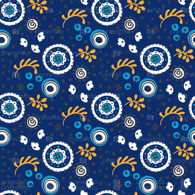 Бесшовный узор с фантазийными цветами, этнический вращающийся повторяющийся дизайн ткани и плитки, натуральные обои, иллюстрация завитка цветочного декора. Пейсли печать рисованной элементы.Украинский узор