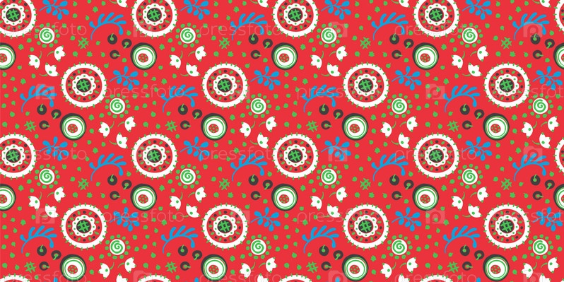 Бесшовный узор с фантазийными цветами, этнический вращающийся повторяющийся дизайн ткани и плитки, натуральные обои, иллюстрация завитка цветочного декора. Пейсли печать рисованной элементы.Украинский узор