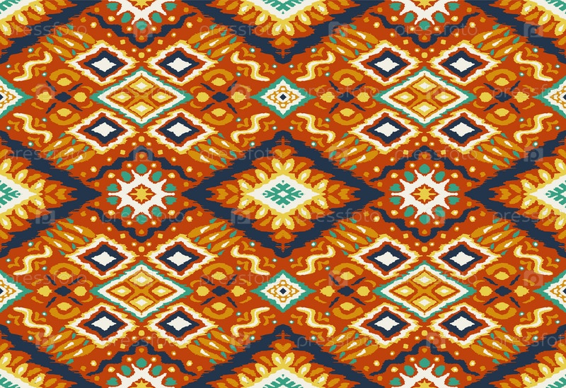 Икат геометрический фольклорный орнамент с бриллиантами. Племенная этническая векторная текстура. Бесшовный полосатый узор в стиле ацтеков. Народная вышивка. Индийский, скандинавский, цыганский, мексиканский, африканский ковер
