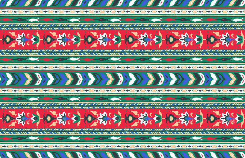 Геометрический фольклорный орнамент икат. Племенная этническая векторная текстура. Бесшовный полосатый узор в стиле ацтеков. Рисунок племенной вышивки. Индийский, скандинавский, цыганский, мексиканский, народный узор