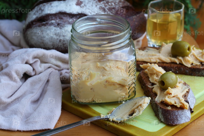 Сыр брюност с черным хлебом и оливками