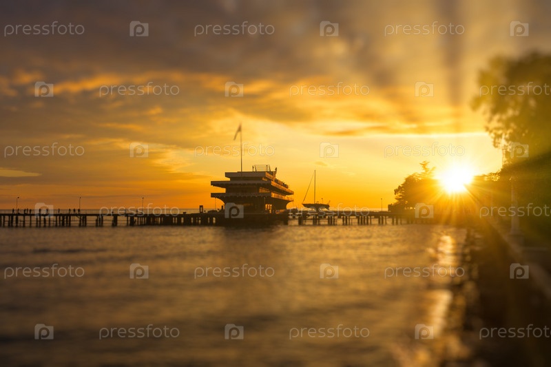 Морской порт Сухуми в лучах заходящего солнца