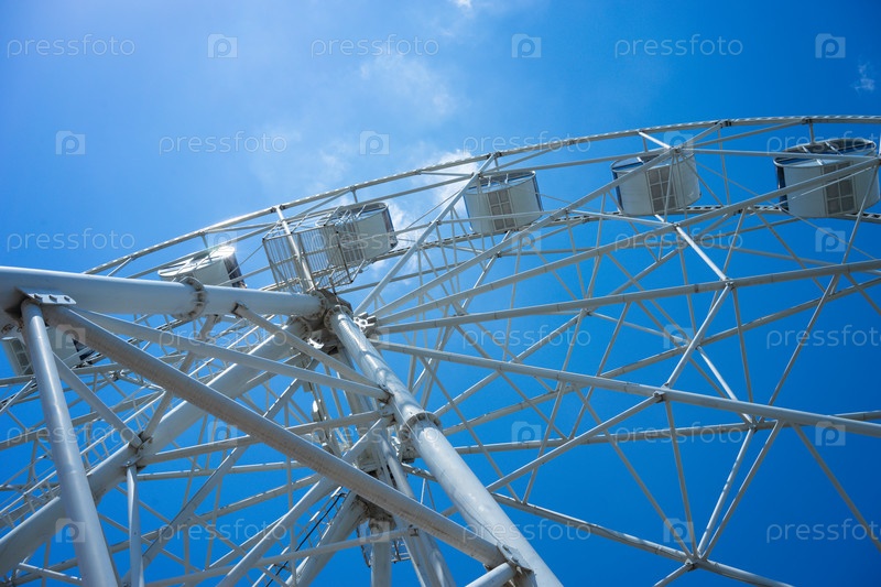 Красивое и современное колесо обозрения на фоне голубого неба