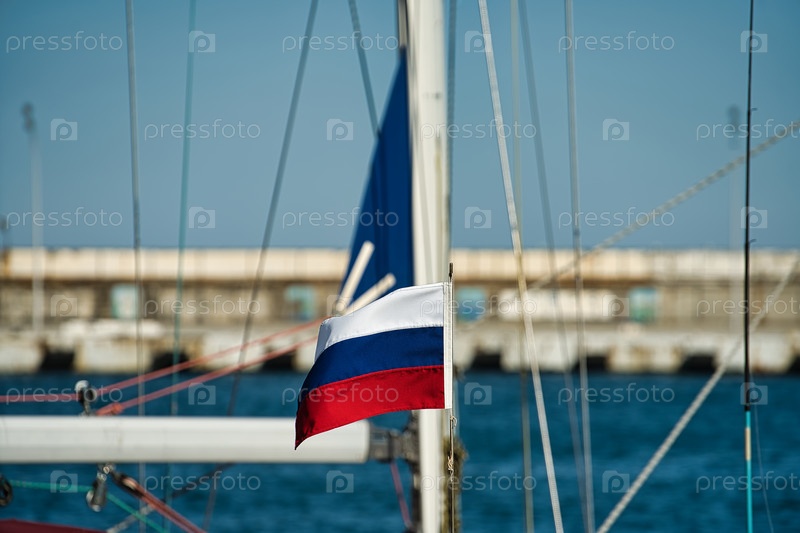 Российский флаг на яхте крупным планом