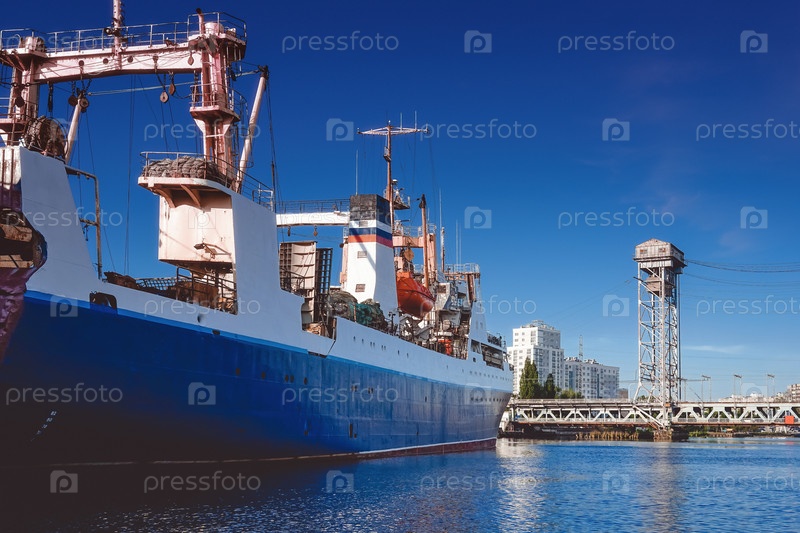 Порт большого русского города с кораблями