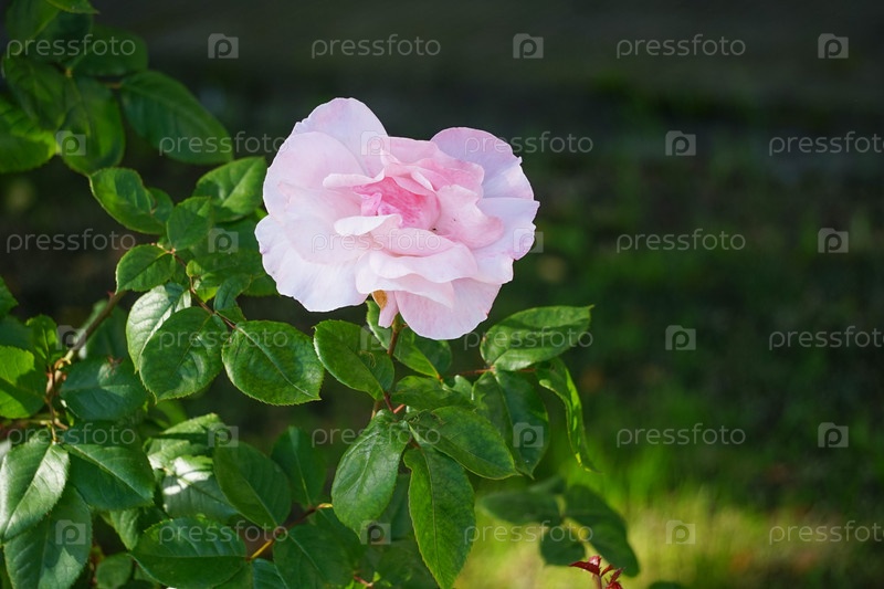 Розовый цветок розы на размытом зеленом фоне