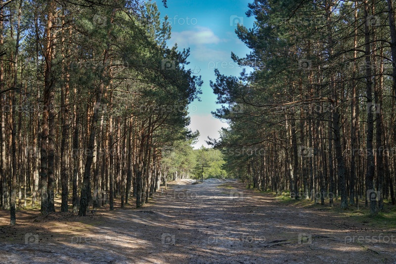 Естественный фон с сосновым лесом в солнечный день