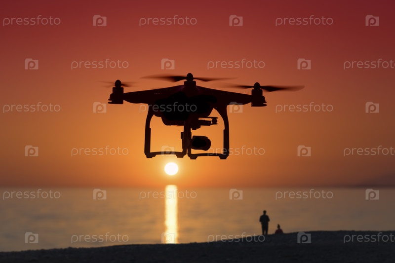 Силуэт квадрокоптера на фоне заката