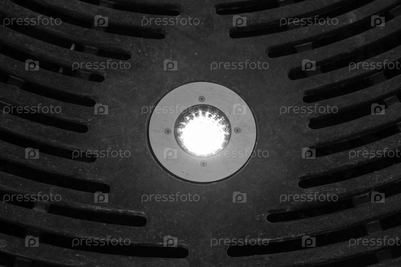 Темный фон с металлической решеткой и фонарем