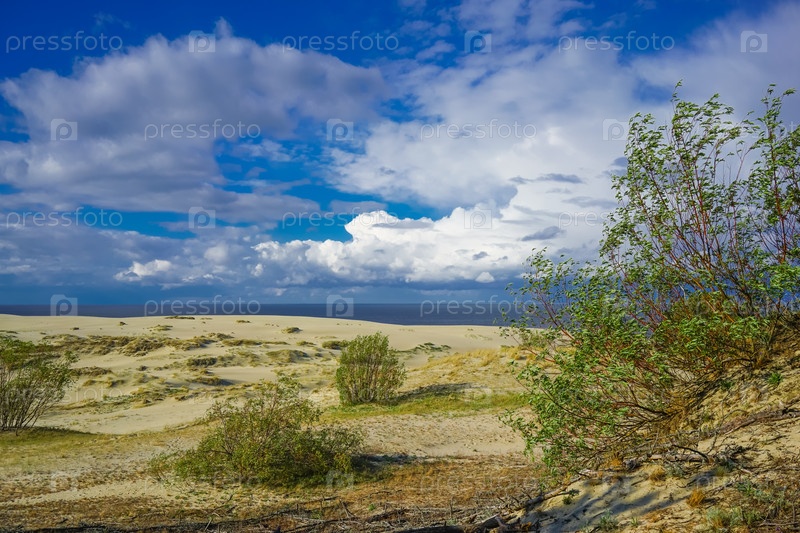 Морской пейзаж Балтийского моря с прибрежными песчаными дюнами Куршской косы