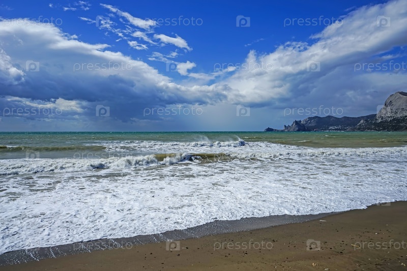 Морской пейзаж с красивыми изумрудными волнами. Судак, Крым