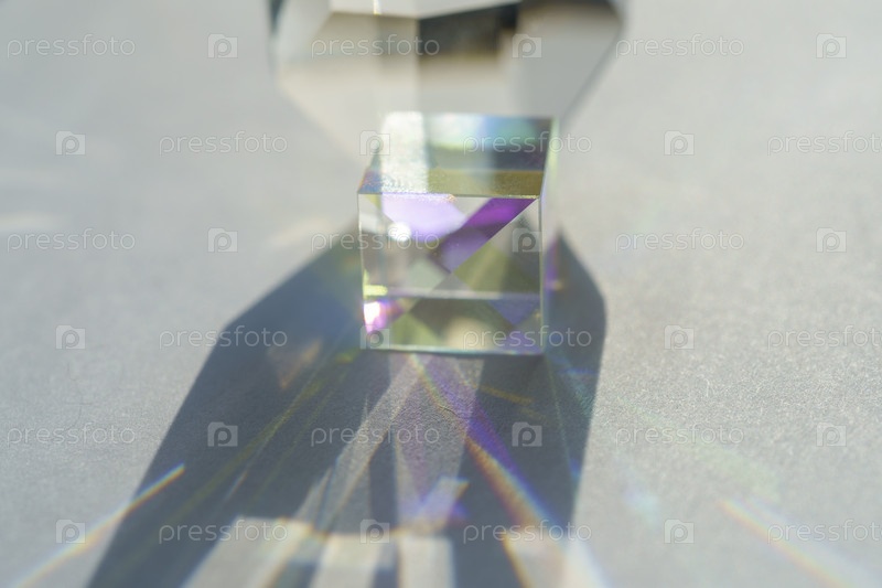 Кубическая радужная призма на белом фоне