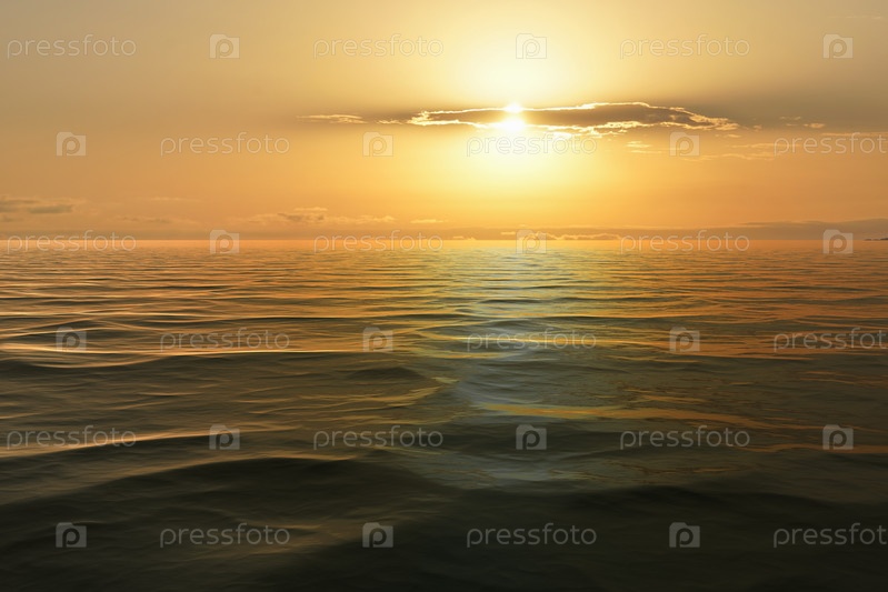 Красивый морской пейзаж с оранжевым закатом