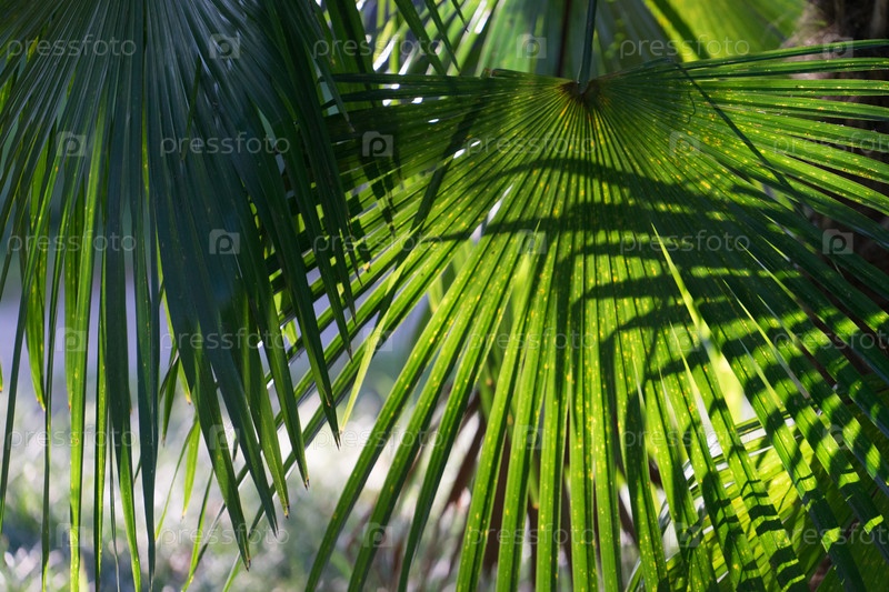 Естественный фон с веерными пальмовыми листьями в яркий солнечный летний день