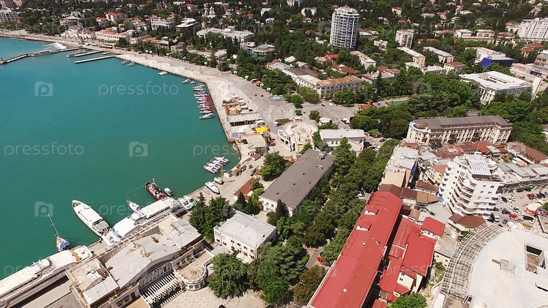 Вид с воздуха на городской пейзаж Ялты, Крым