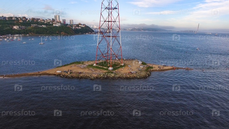 Вид с воздуха на приморский город с красивыми пейзажами и живописной береговой линией