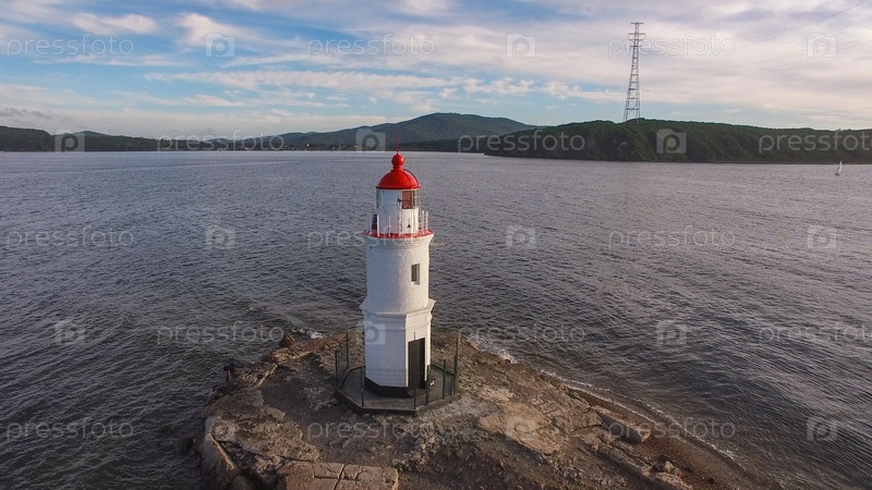 Морской пейзаж с видом на маяк на фоне моря