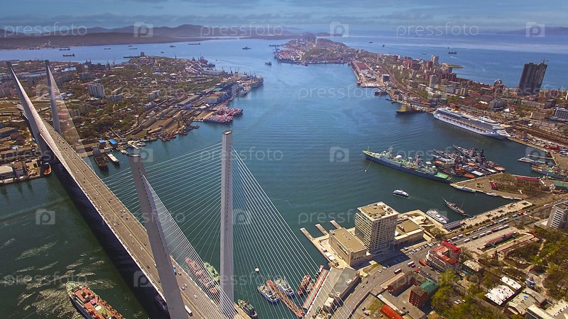 Вид с воздуха на городской пейзаж Владивостока