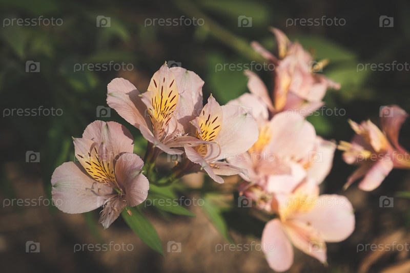 Розовые цветы альстрамерии на размытом фоне