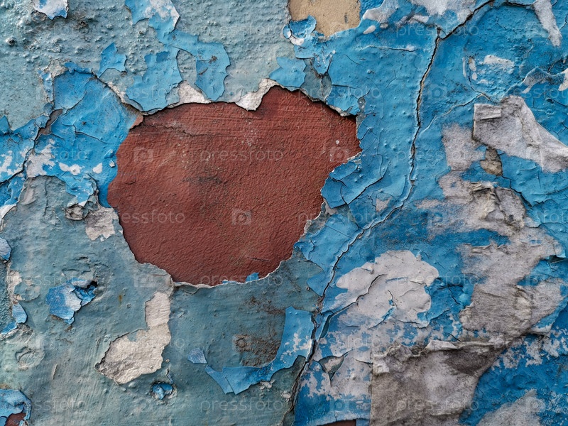 Синий фон с потрескавшейся масляной краской на штукатурке