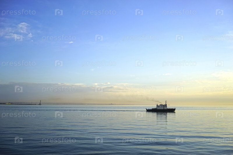 Морской пейзаж с кораблем на горизонте