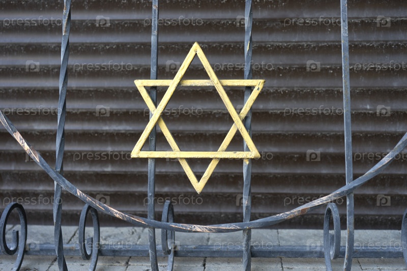 Металлический забор с позолоченной еврейской звездой