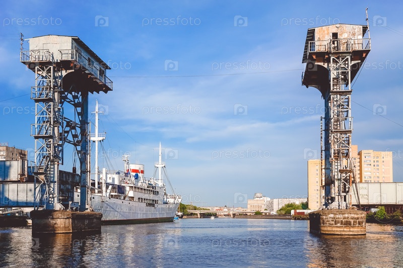 Порт большого русского города с кораблями