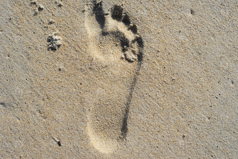 Естественный фон песка с отпечатком человеческой ноги