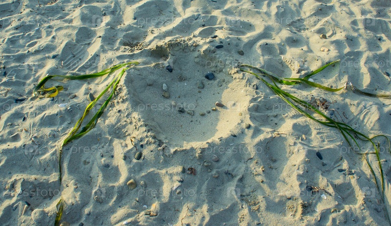 Песчаный пляж с портретом из натуральных материалов