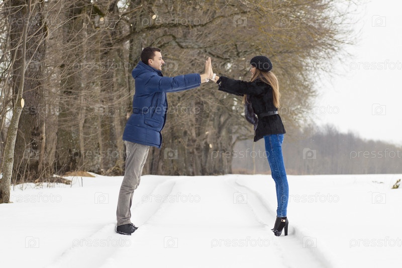 Пара на прогулке в зимнем парке