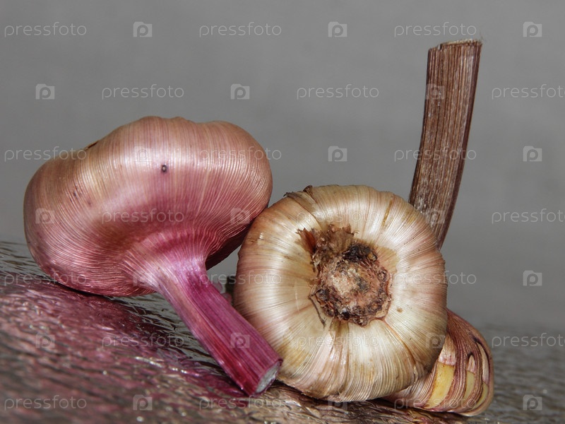 Три луковицы цветов гладиолусов разных сортов на серебряном фоне