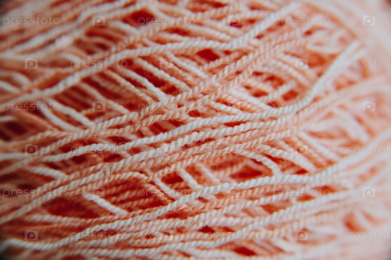 Пряжа кораллового цвета, крупный план, фон