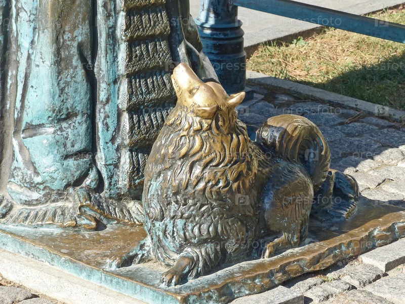 Фрагмент скульптуры "Дама с собачкой". Городская скульптура изображает персонажей рассказа А.П.Чехова "Дама с собачкой" на набережной Ялты, Крым, 02/09/2019