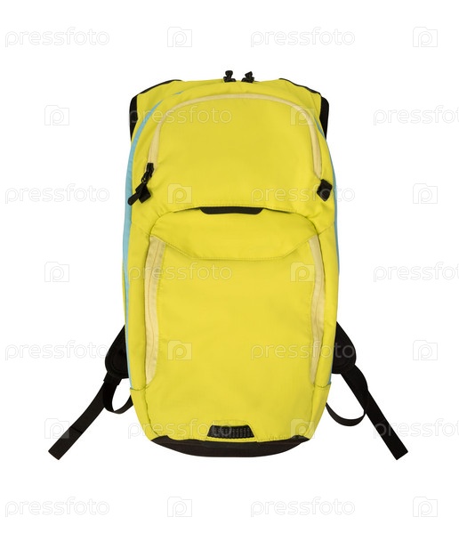 Вид спереди желтого рюкзака на белом фоне