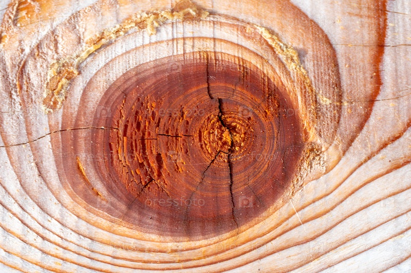 Фоновая текстура. Поверхность обрезной доски с сучком на срезе. Текстура дерева. Вид сверху