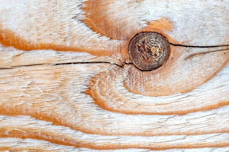 Фоновая текстура. Поверхность обрезной доски с сучком на срезе. Текстура дерева. Вид сверху