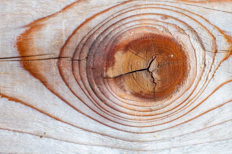 Фоновая текстура. Поверхность обрезной доски с сучком на срезе. Текстура дерева. Вид сверху