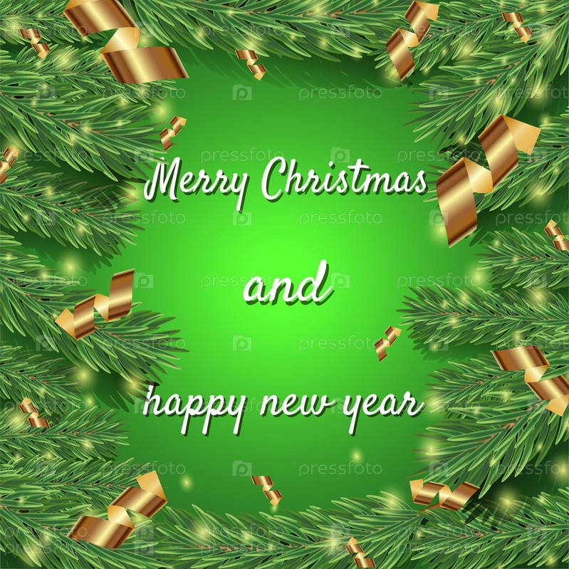 Рождественский дизайн с еловой веткой. Шаблон для текста, элемент дизайна, пространство для копирования, открытка, социальные сети, обложка, баннер. Новый год и Рождество