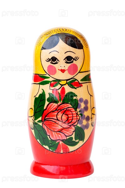 Матрешка изолированная на белом фоне, вертикальное фото