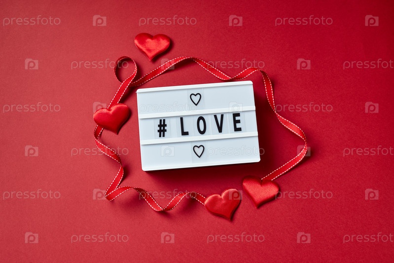 Сообщение о любви с красными сердцами на красном фоне