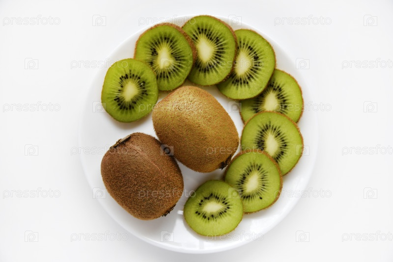 Кусочки зеленого киви на тарелке. Вкусный фруктовый завтрак