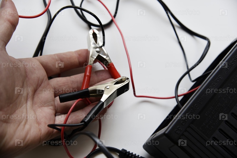 Красные и черные зажимы для батареек. Зарядное устройство для автомобильных аккумуляторов