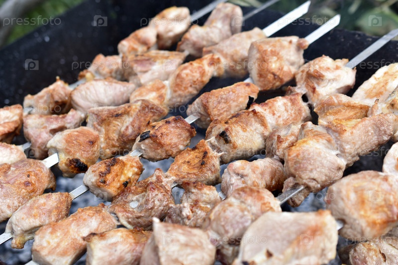 Вкусный шашлык из горячей свинины на вертеле