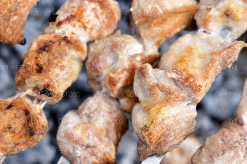 Вкусный шашлык из горячей свинины на вертеле