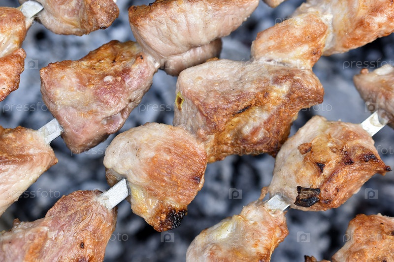 Вкусный шашлык из горячей свинины на вертеле