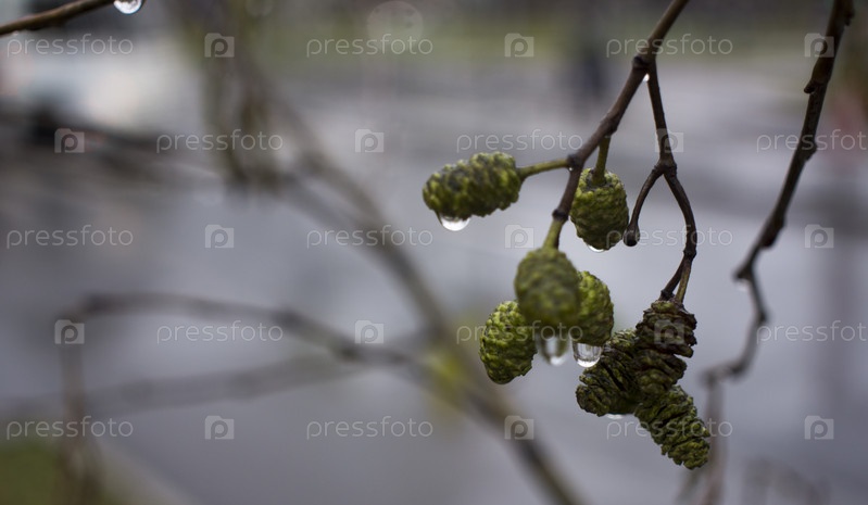 Ольха с каплями дождя на фоне осени