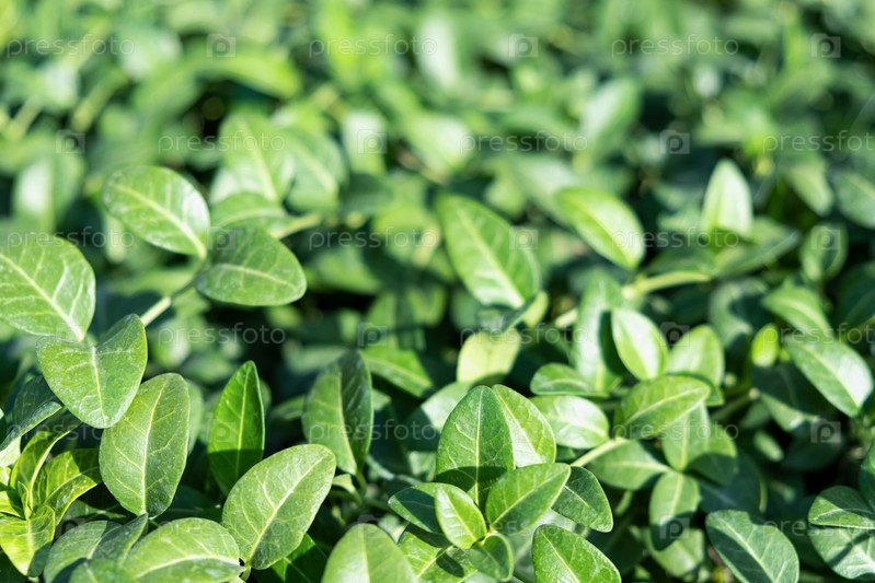 Полный кадр Зеленое растение барвинок, листья листвы природа фон, вид сверху. Свежая садовая абстрактная листва