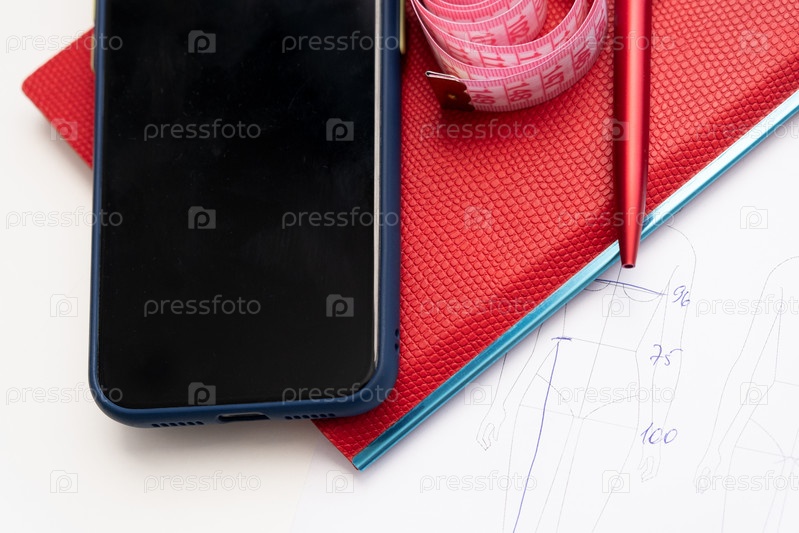 Снятие мерок с ткани. Швея шьет на швейной машине в небольшой студии. Ателье моды, пошив одежды, концепция одежды ручной работы. Медленная мода Осознанное потребление