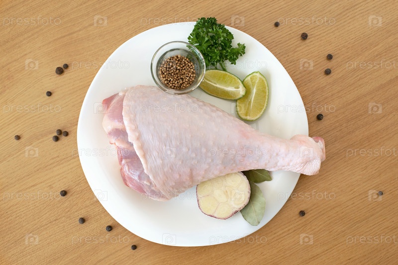 Aw ножка разделочной доски индейки с лаймами и петрушкой на белом фоне, изолировать