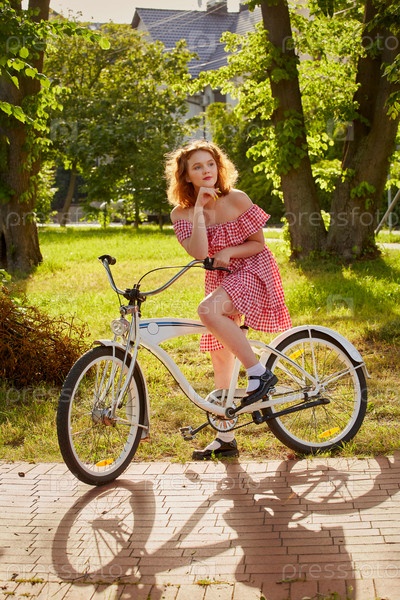 Красивая девушка велосипедистка